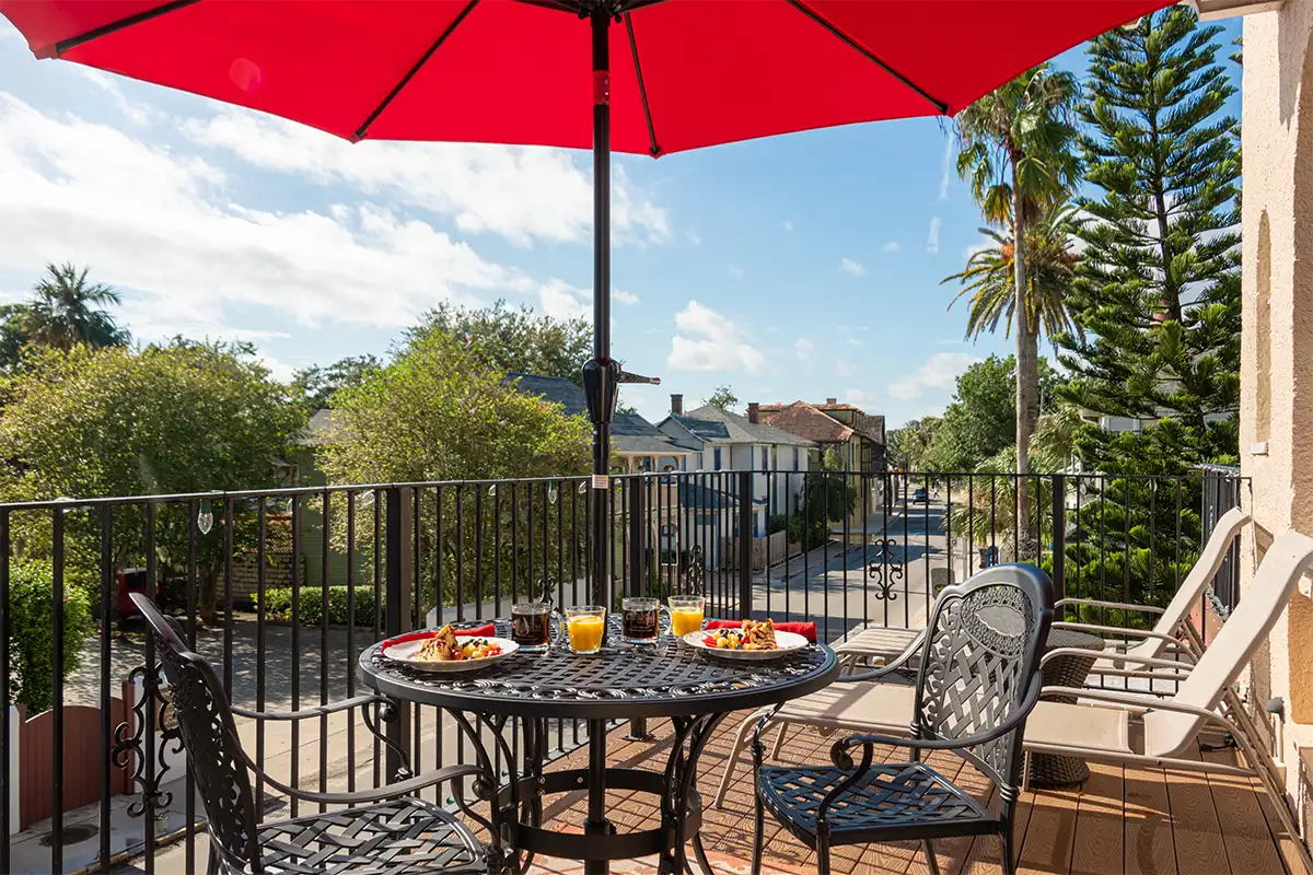 Cordova offers 231 square feet of living space and a 28-square-foot bath, along with a generous 133-square-foot private balcony. With a queen bed, jetted tub, and roomy balcony, this B&B room is designed for two guests. Stay a few nights to discover more of downtown Saint Augustine and enjoy comfort and charm at Casa de Sueños.