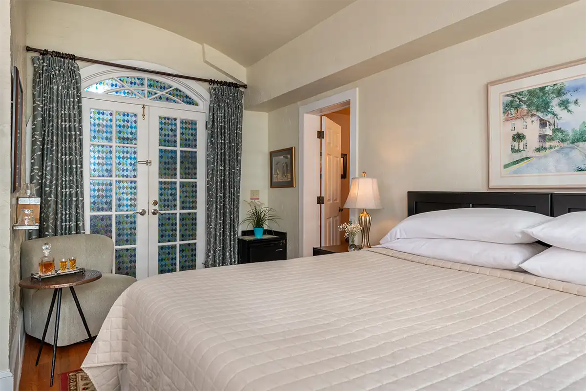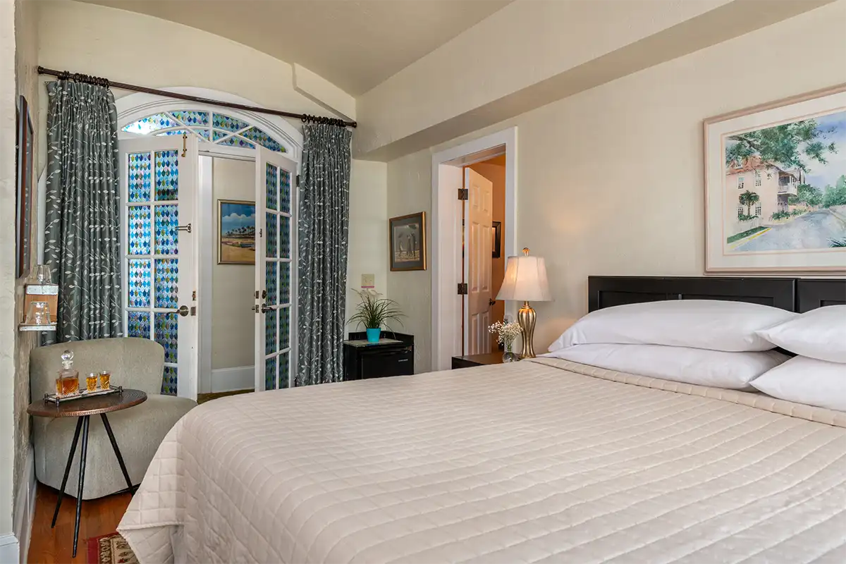 Granada offers 215 square feet of space and a 50 square foot bath, comfortably suited for two guests. The king bed and thoughtful details make it easy to settle in for a multi-night stay. Experience the best of Saint Augustine and see why guests choose our downtown B&B for their getaway.