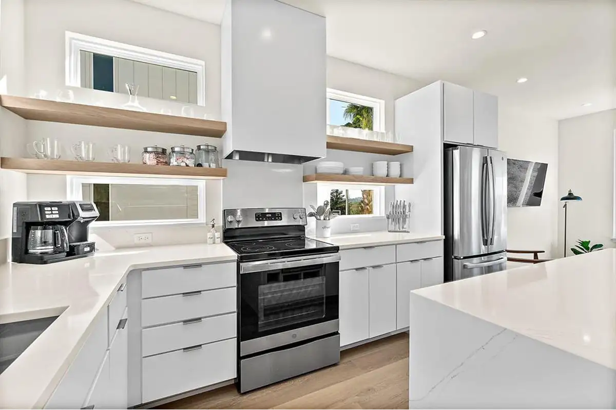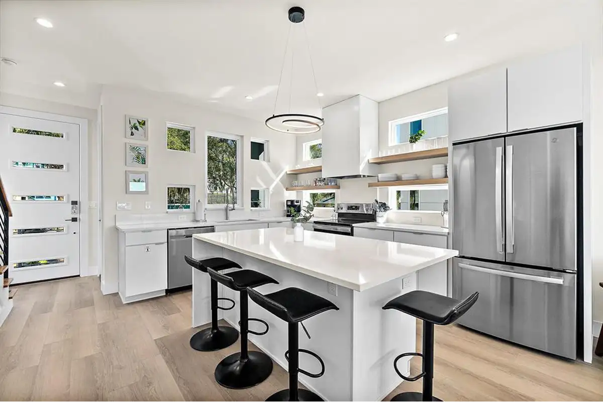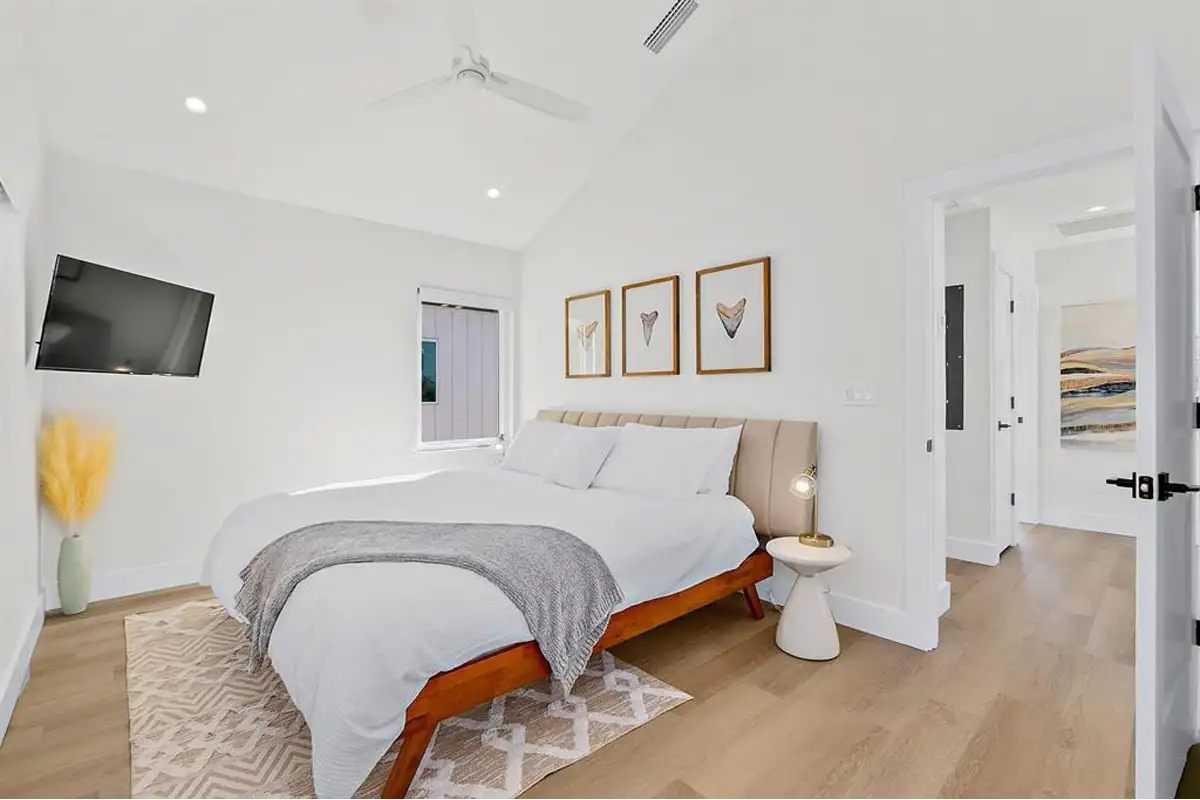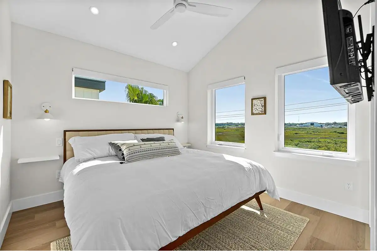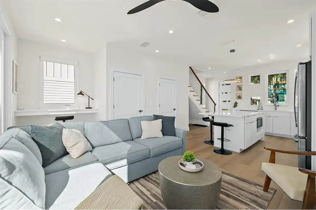 194 Riberia Street is located in the historic Lincolnville neighborhood. This unique luxury home, perched along the tidal marshes of Oyster Creek and the San Sebastian River, is just steps from St. Augustine’s historic district. It features a gourmet kitchen, an open living area with a large Smart TV (Hulu Live TV included), a handy workspace, a half bath on the first floor, two king bedrooms on the 2nd floor, each with a full bath, and a sofa bed to accommodate additional guests.